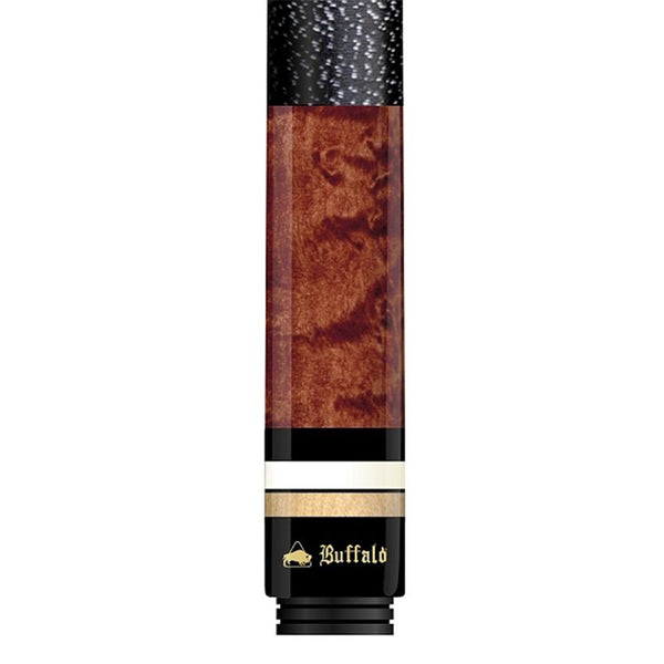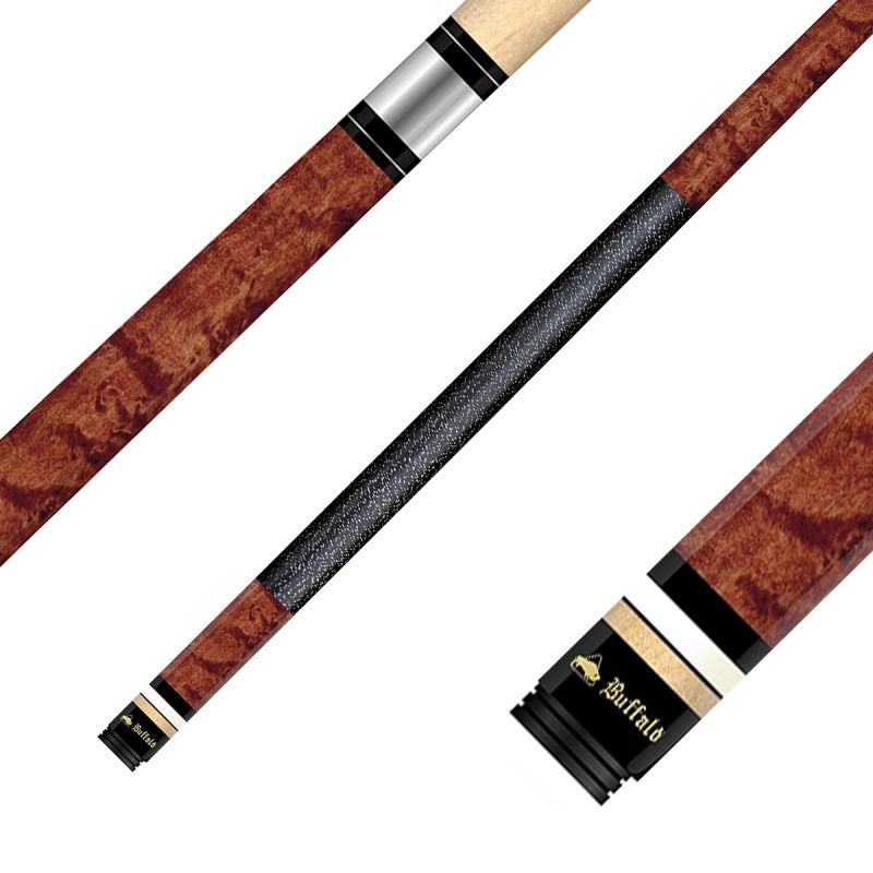 Mit der neuen Serie Ultimate präsentiert Buffalo hochwertige Profi-Queues aus gut abgelagertem Vogelaugen-Ahorn mit dezentem Dekor. Durch die verschiedenfarbige Beizung kommt die wertvolle Maserung besonders schön zur Geltung. Aber alles entscheidend sind die Spieleigenschaften. Daher wurde bei dem Oberteil der unter Profispielern beliebte konische Schliff angewendet. Dadurch ist das Oberteil zwar weiterhin flexibel, aber vom Härtegrad eher als hart einzustufen. Der Durchmesser liegt bei 12,75 mm, so wie er zur Zeit von vielen Profispielern bevorzugt wird. Der Buffalo Ultimate ermöglicht perfektes Stellungsspiel und garantiert optimale Ballkontrolle. Die Griffwicklung besteht aus bestem Leinenband. Unser Fazit: Höchste Qualität bei einem Super Preis-Leistungs-Verhältnis.