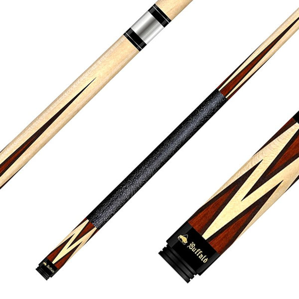 Mit der neuen Serie Ultimate präsentiert Buffalo hochwertige Profi-Queues aus gut abgelagertem Vogelaugen-Ahorn mit dezentem Dekor. Durch die verschiedenfarbige Beizung kommt die wertvolle Maserung besonders schön zur Geltung. Aber alles entscheidend sind die Spieleigenschaften. Daher wurde bei dem Oberteil der unter Profispielern beliebte konische Schliff angewendet. Dadurch ist das Oberteil zwar weiterhin flexibel, aber vom Härtegrad eher als hart einzustufen. Der Durchmesser liegt bei 12,75 mm, so wie er zur Zeit von vielen Profispielern bevorzugt wird. Der Buffalo Ultimate ermöglicht perfektes Stellungsspiel und garantiert optimale Ballkontrolle. Die Griffwicklung besteht aus bestem Leinenband. Unser Fazit: Höchste Qualität bei einem Super Preis-Leistungs-Verhältnis.