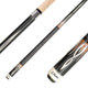Die beliebte Original J.Parker JP-Serie besticht durch hohe Qualität und erfüllt alle Voraussetzungen eines Profi-Cues und das bei einem super Preis/Leistungsverhältnis. Entwickelt für Spieler, die neben der professionellen Spielqualität auch auf ein schönes Design Wert legen. Alle Modelle der JP-Serie stechen hervor durch die geschmackvollen Edelholz-Dekore und schönen Verzierungen im Unterteil. Das mittelharte kanadische Ahornoberteil ist mit einer Fiber Ferrule und einer Mehrschicht Lederspitze mit 12,75 mm ausgestattet. Das Profi-Klebeleder ist bereits perfekt geformt und spielbereit aufgeraut. Die Verbindung mit dem Unterteil erfolgt durch einen Bullet Quick-Lock Schnellverschluss-System. Der Griffbereich ist mit einem hochwertigen schwarz/weißen Leinenband versehen. Die Gesamtlänge des 2-teiligen Queue ist 147 cm. Die J. Parker Serie JP- 1 bis JP-7 bieten eine super Auswahl an unterschiedlicher Optik und werden inklusive einem 2-teiligen Gewindeschutz ausgeliefert.