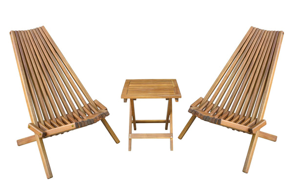 Holzliegestuhl 2er Set aus Akazie mit Beistelltisch – Klappbar & Stilvoll