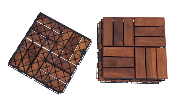 • 9 Klickfliesen aus echtem Akazienholz (FSC®-zertifiziert)