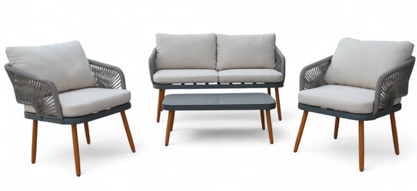 Prestige Home Outdoor Loungemöbel-Set „Rope“ – 4-teilig mit Polsterauflagen