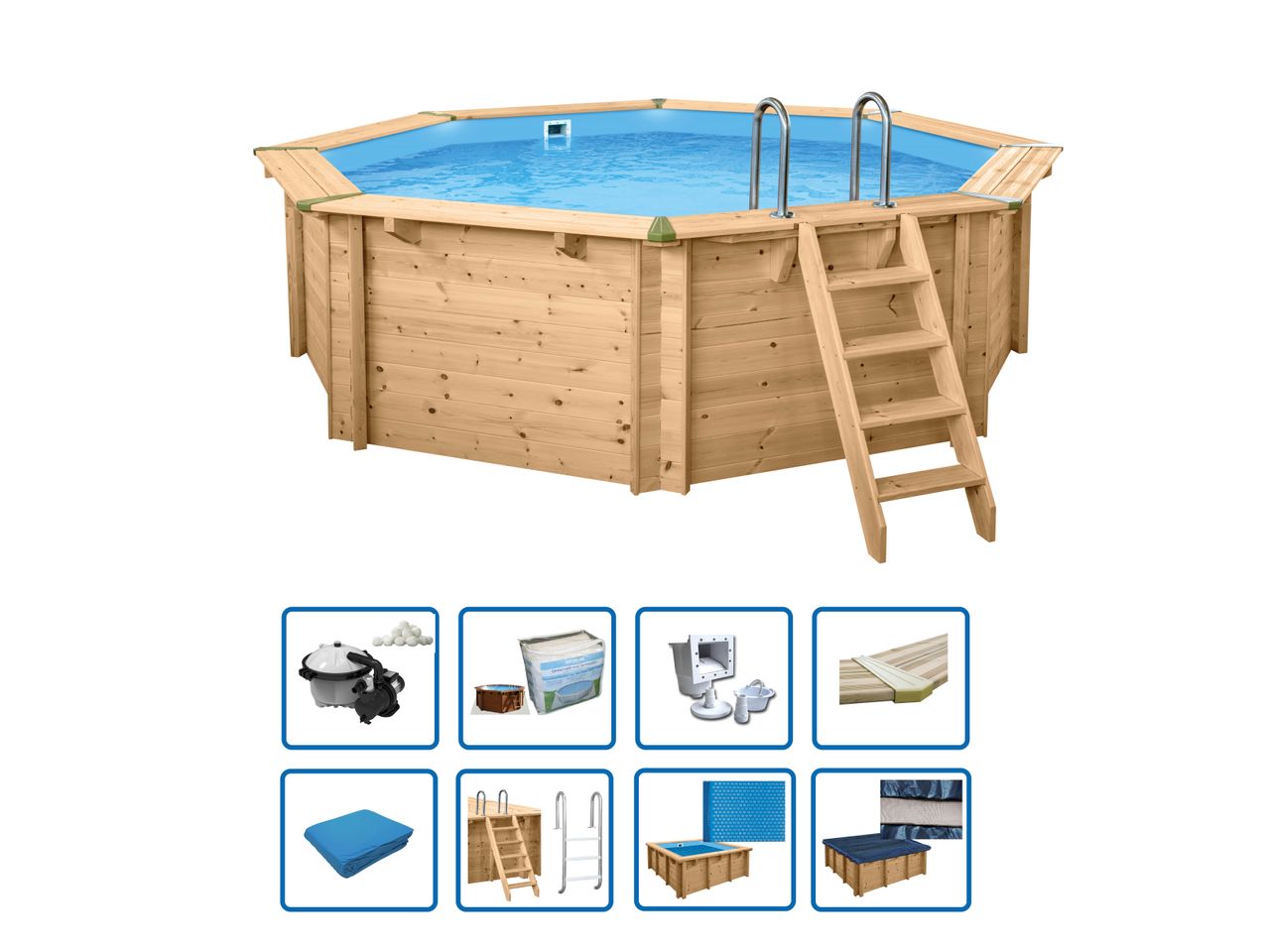 Holzpool Java 5,30x136cm Achteck Rund inkl. Filteranlage Premium Set