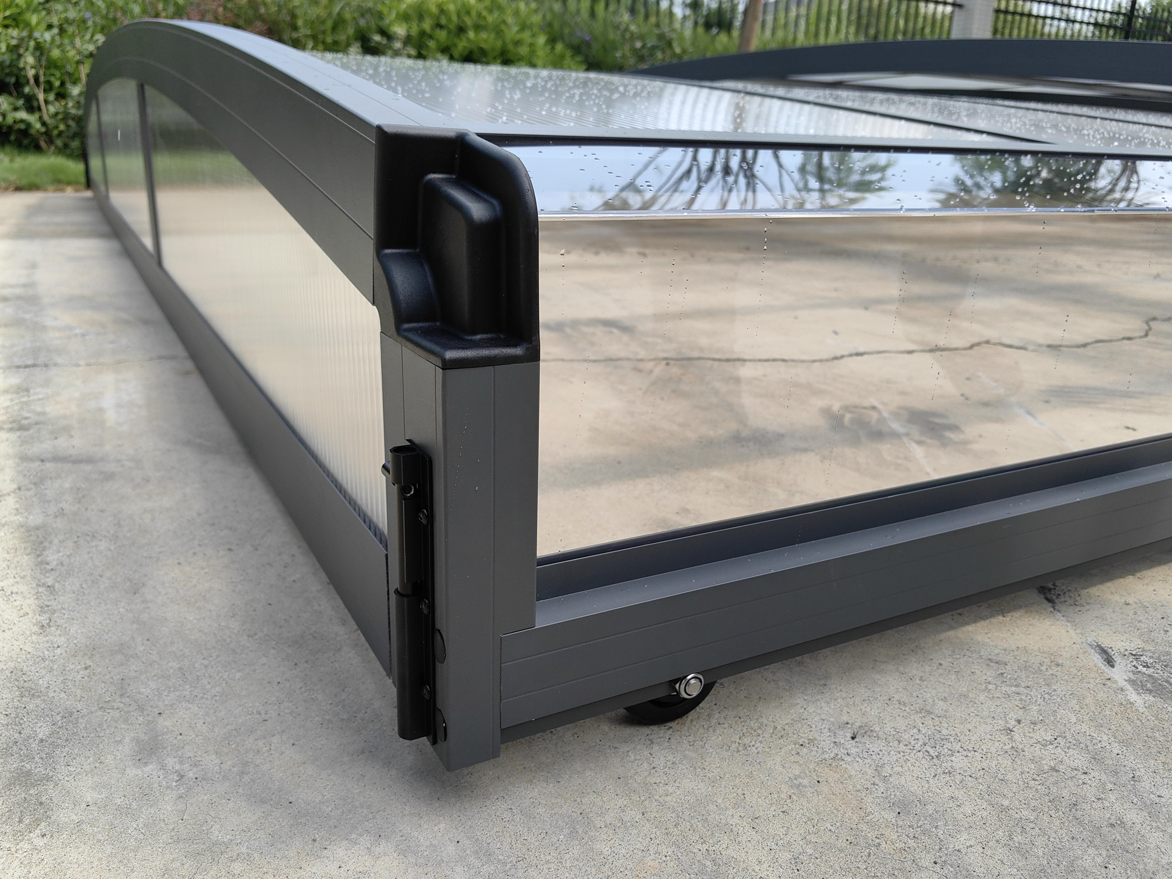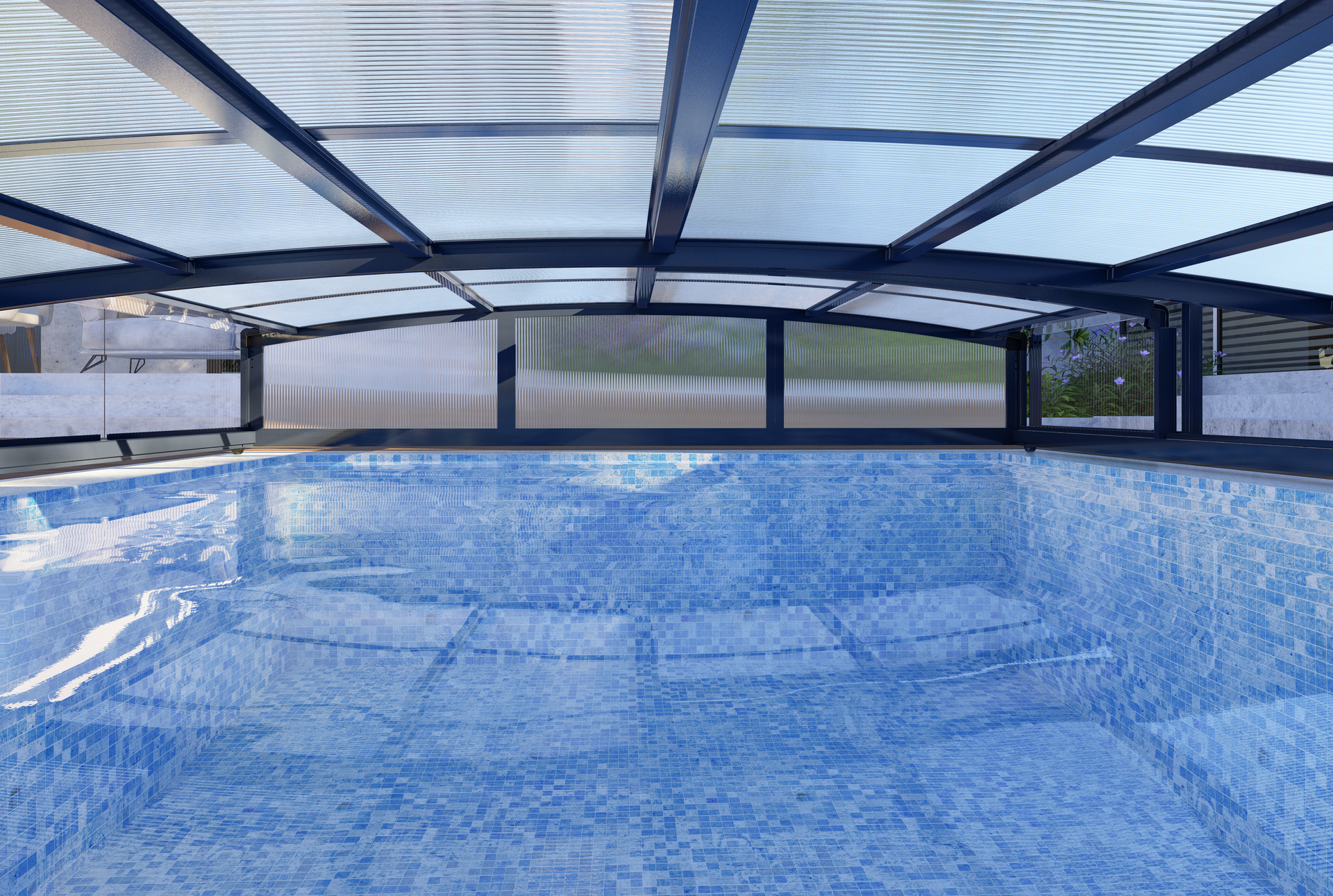 Die Poolüberdachung "Aqualina" vereint elegantes Design mit praktischer Funktionalität. Die robuste Aluminium-Konstruktion mit hochwertigem Glaselementen bietet zuverlässigen UV-Schutz und Witterungsbeständigkeit für ganzjährige Nutzung. Das modulare System ermöglicht flexible Anpassung an Ihren Poolbereich, während die transparente Gestaltung eine offene Atmosphäre bewahrt. Automatische Steuerungsmöglichkeiten und energiesparende Eigenschaften reduzieren Betriebskosten. Die pflegeleichte Oberfläche und winterfeste Konstruktion garantieren langlebige Zuverlässigkeit. Mit ihrer modernen Ästhetik und dem platzsparenden Design wird "Aqualina" zum stilvollen Schattenspender und Schutzschild für Ihren Pool.