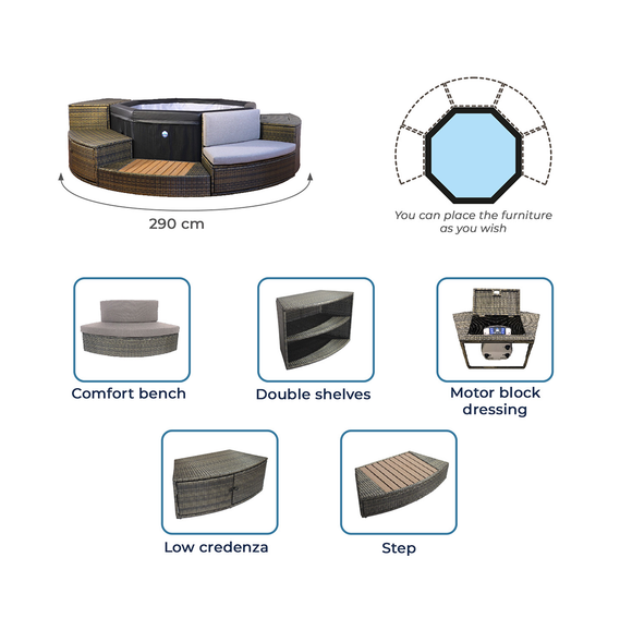 Outdoor Whirlpool OCTOPUS, 4-6 Personen ink. 5-tlg. Möbelset