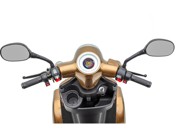 Beim J4000 können Helm, Taschen oder kleinere Einkäufe bequem unter dem aufklappbaren Sitz verstaut werden. Dieses Fach ist groß dimensioniert und lässt sich verschließen, damit Ihre Sachen sicher untergebracht sind. Hinter dem Sitz befindet sich zusätzlich ein abschließbares Topcase, das sich ideal für größere Einkaufstüten oder einen Picknickkorb eignet. Durch die beiden Ablagemöglichkeiten bleibt der Lenker frei von Taschen – ein wichtiger Sicherheitsaspekt bei einem Fahrzeug, das bis zu 25 km/h fährt.